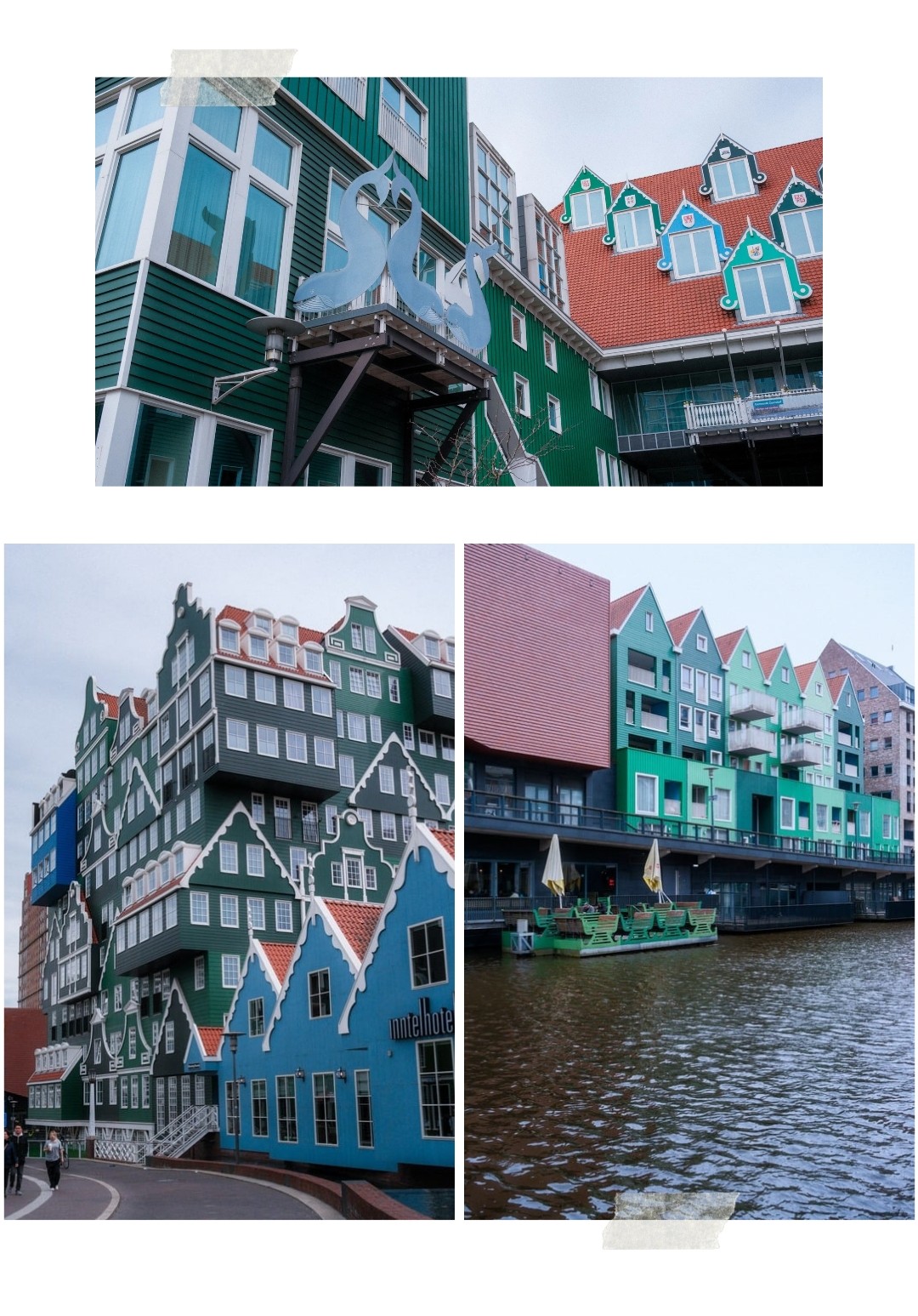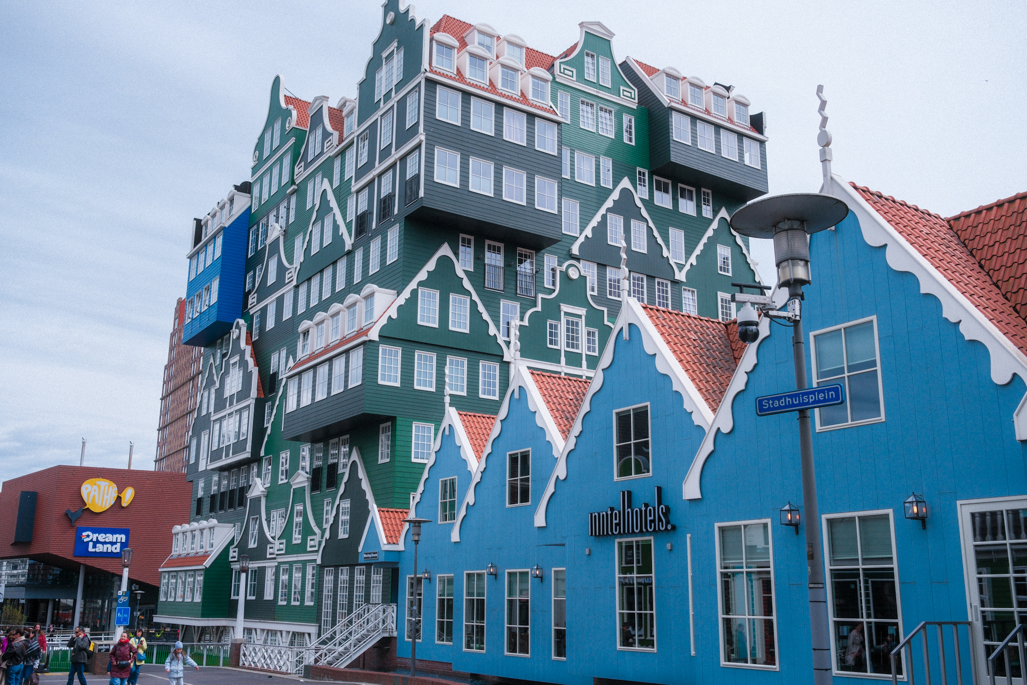 La zone à visiter est située à proximité de la gare. Le Inntel Hotels date de 2010 et ses quatre façades sont composées d’environ 70 maisons traditionnelles empilées les unes sur les autres, sur 12 étages. Si vous faites attention, vous verrez qu’une seule de ces maisons est bleue, en hommage à « la maison bleue de Zaandam », peinte par Claude Monet.